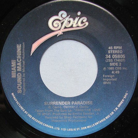 Miami Sound Machine – Bad Boy - 1985-Latin, Synth-pop (Vinyl, 7", Single, 45 RPM )