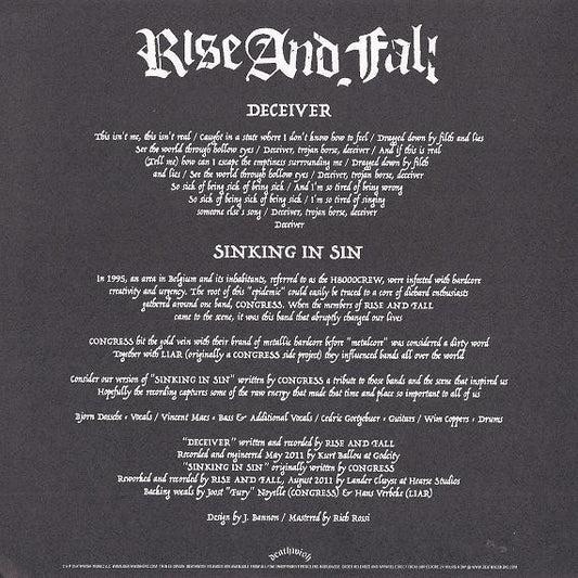 Rise And Fall – Deceiver b/w Sinking In Sin - 2011 - Hardcore - Vinyl, 7", Single, White