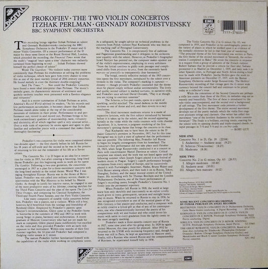 Itzhak Perlman – Prokofiev: The Two Violin Concertos – 1983 – Classical / Modernist (U.S. pressing) Vinyl