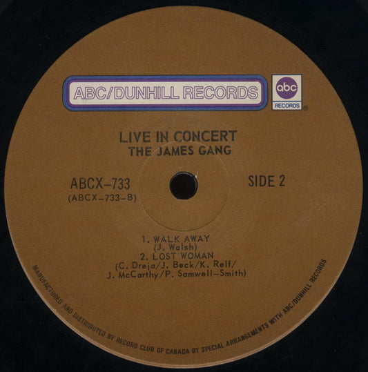 James Gang – Live In Concert 1971- Blues Rock, Prog Rock (Vinyl )