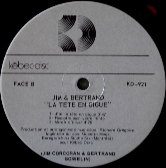Jim Corcoran, Bertrand Gosselin – La Tête En Gigue - 1978- Folk, World, & Country Style: Folk (Vinyl)