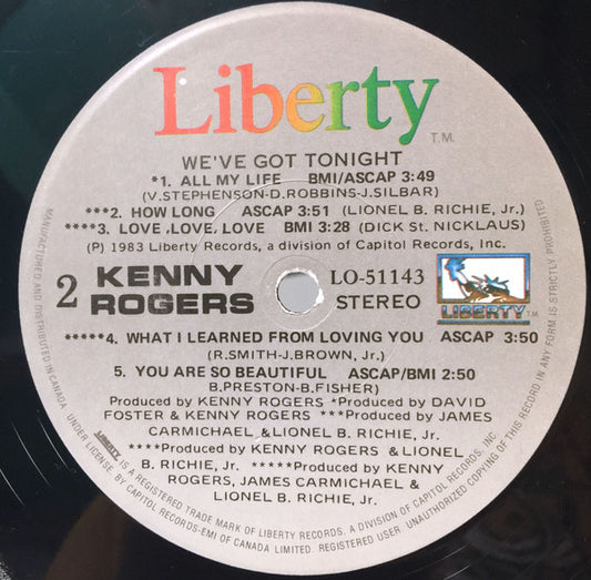 Kenny Rogers – We've Got Tonight - 1983-Country Rock, Pop Rock, Ballad (Vinyl) Near Mint
