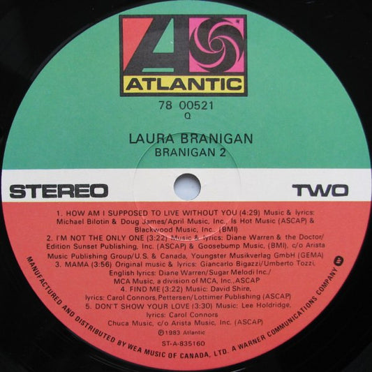 Laura Branigan – Branigan 2 - 1983- Electronic, Pop Style: Ballad (Vinyl ) Near Mint