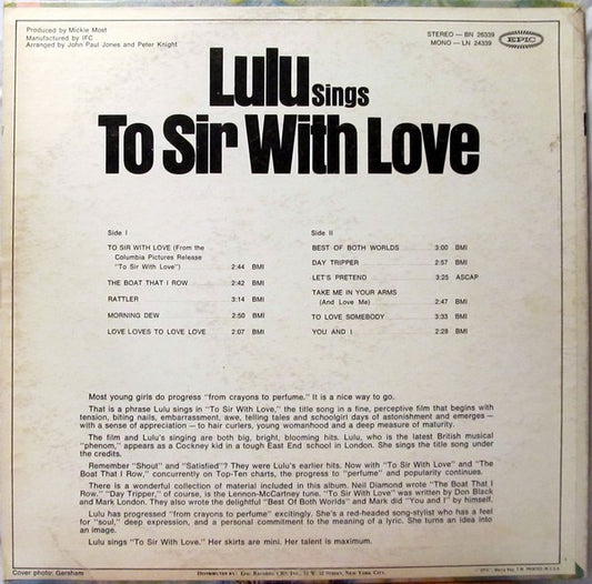 Lulu – Sings To Sir With Love - 1967-Pop (vinyl)