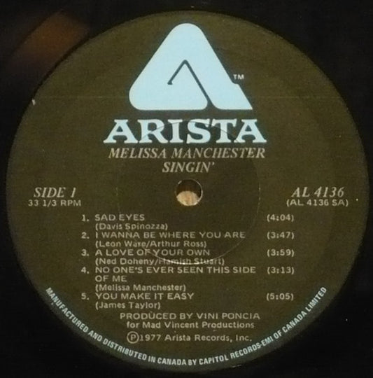 Melissa Manchester – Singin' - 1977- Ballad, Smooth Jazz, Funk, Vocal (Vinyl)