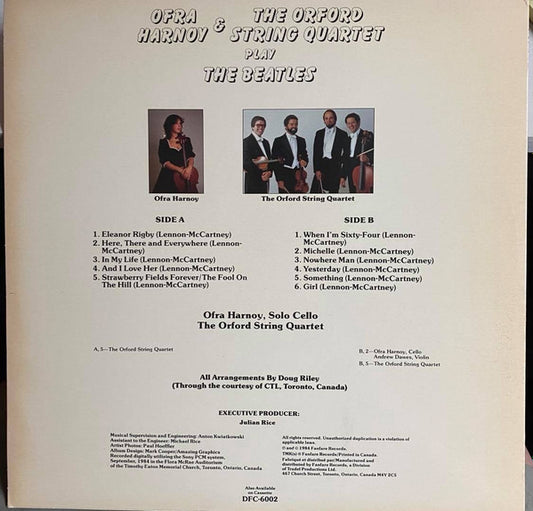 Ofra Harnoy & Orford String Quartet – Play The Beatles - Classical (Vinyl) Mint Copy
