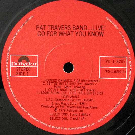 Pat Travers Band – Live! Go For What You Know - 1979 Blues Rock (vinyl)