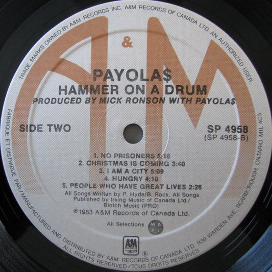 Payolas Hammer On A Drum Vinyl LP- 1983 (Clearance vinyl) NO COVER