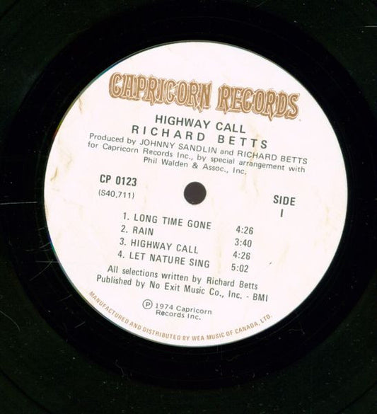Richard Betts – Highway Call - 1974 Southern Rock (vinyl)