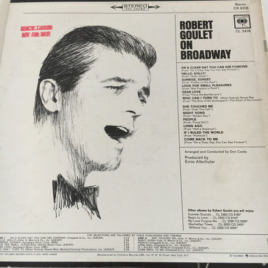 Robert Goulet On Broadway - 1965-Stage & Screen (vinyl)