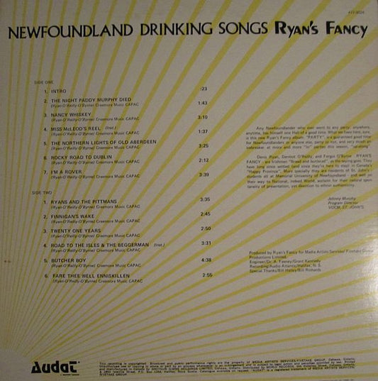 Ryan's Fancy – Newfoundland Drinking Songs - 1977 Celtic - Maritime (vinyl) Near Mint Copy !