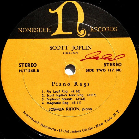 Scott Joplin, Joshua Rifkin – Piano Rags By Scott Joplin 1970-Jazz Style: Ragtime (vinyl ) NMint