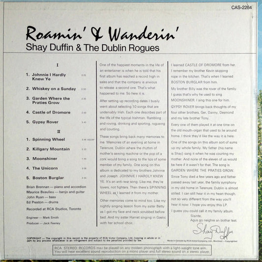 Shay Duffin & The Dublin Rogues – Roamin' & Wanderin'- 1965? - Folk, Celtic, Irish Folk (vinyl)