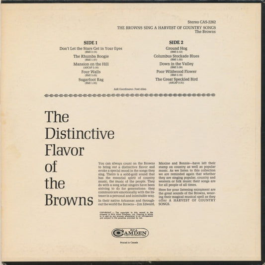 The Browns The Browns Sing A Harvest Of Country Songs - 1968- Folk, World, & Country