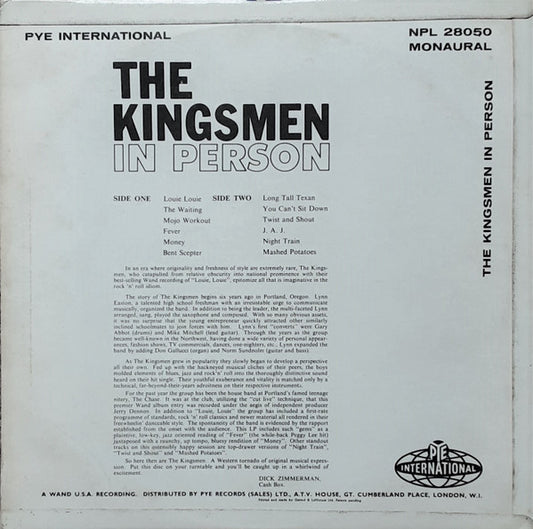 The Kingsmen – The Kingsmen In Person 1963-Rock Style: Garage Rock, Rock & Roll (Rare Vinyl)