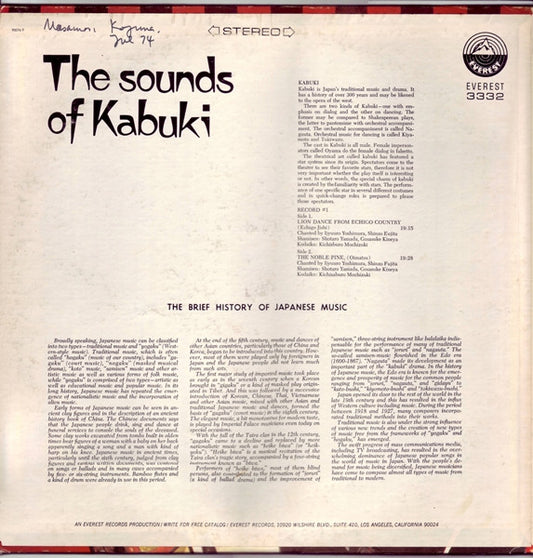 The National Kabuki Company – The Sounds Of Kabuki - 1971-Japanese Folk (vinyl) NM