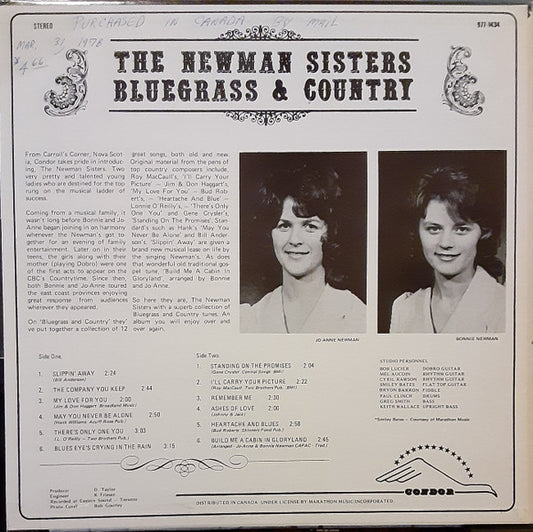 The Newman Sisters - 1974- Folk, World, & Country Style: Bluegrass (vinyl)