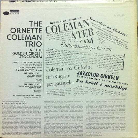 The Ornette Coleman Trio At The Golden Circle Stockholm Volume Two -1966-Free Jazz (Rare Vinyl)