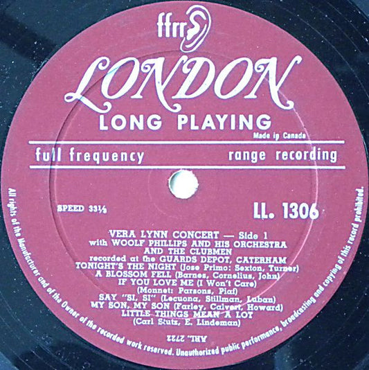 Vera Lynn with Woolf Phillips & His Orchestra* And The Clubmen – Vera Lynn Concert -1955-Jazz, Pop (Rare Vinyl)