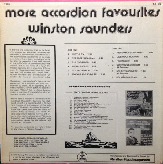 Winston Saunders - More Accordion Favourites - 1973- Folk, World, & Country -Newfoundland (Vinyl)