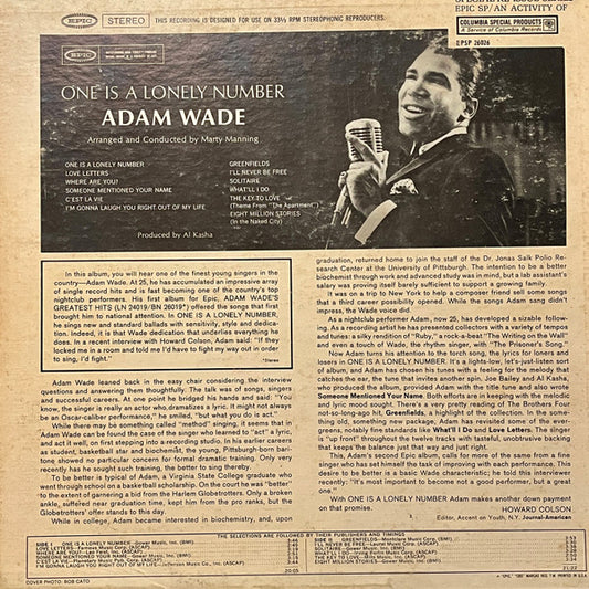 Adam Wade One Is A Lonely Number - Jazz, Blues , Easy Listening 1962 (Rare Vinyl)