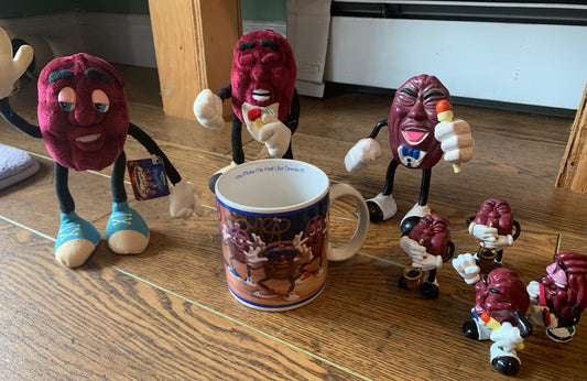 Assorted Plush & Plastic California Raisin Inc. Figures,Mug 1987