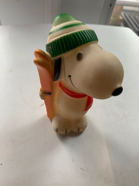 1966 Squishy Plastic Rubber Snoopy Dog Holding Skis Squeaky Toy