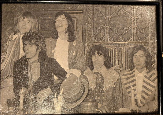 Vintage 1980's Beatles & Rolling Stones Pictures on hardboard ( frames need touching up )