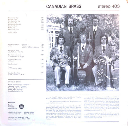 Canadian Brass Plays/Joue Rags - 1974 Genre:Jazz, Classical, Brass & Military (vinyl)