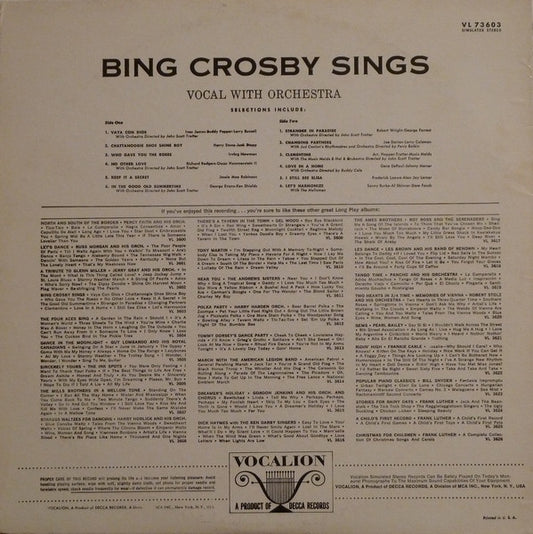 Bing Crosby – Bing Crosby Sings - 1973-Jazz, Pop Style: Vocal, Easy Listening (Vinyl)