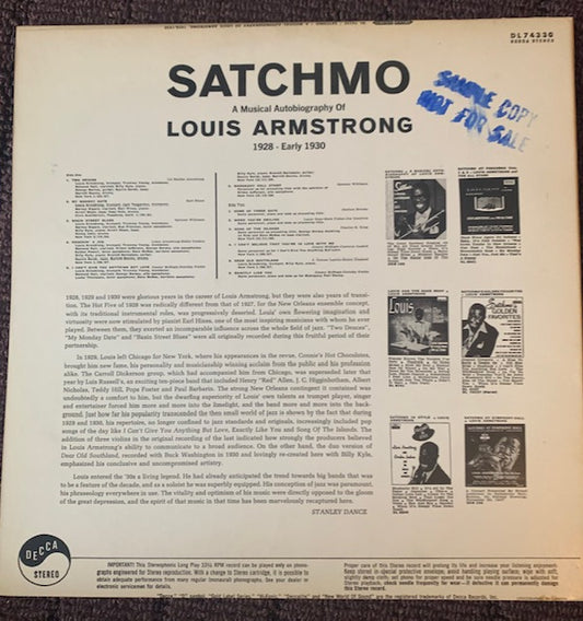 Louis Armstrong – Satchmo A Musical Autobiography Of Louis Armstrong (1928- Early 1930) 1962-Jazz (Rare Vinyl) Sample Copy