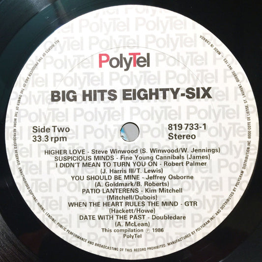 Big Hits Eighty Six 1986 Electronic, Rock Style: Pop Rock, Synth-pop (Vinyl)