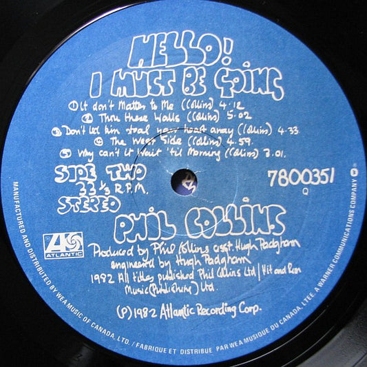 Phil Collins – Hello, I Must Be Going! – 1982 – Pop Rock / Soft Rock (Vinyl)