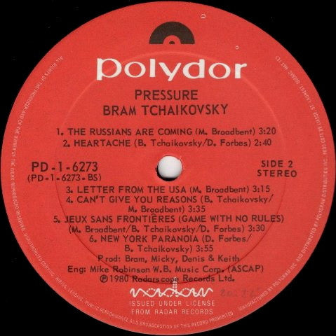 Bram Tchaikovsky – Pressure - 1980- (Vinyl) Mint