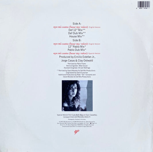 Gloria Estefan – Oye Mi Canto (Hear My Voice) 1990-Electronic, Latin, Pop Style: House, Latin, Garage House ( Vinyl, 12", 33 ⅓ RPM, Maxi-Single )