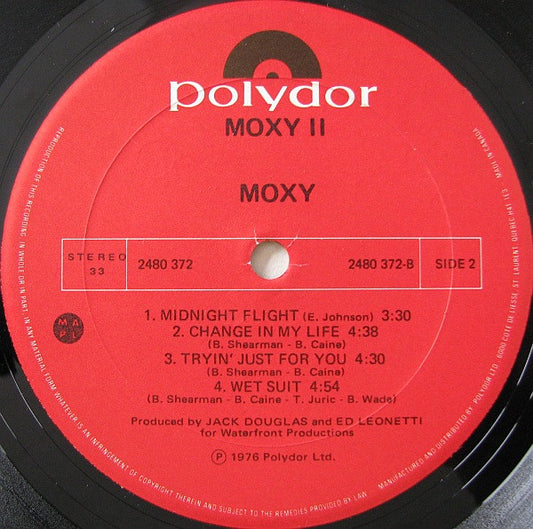 Moxy – Moxy II - 1976 - Rock , Hard Rock, Heavy Metal (Rare Vinyl) Name in heavy marker on label on one side