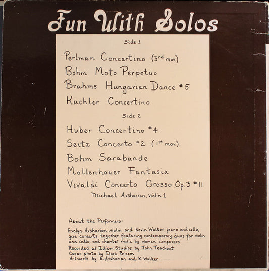 Evelyn Avsharian, Kevin Walker – Fun With Solos -1977 Classical ( Mint Vinyl )