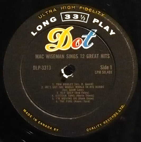 Mac Wiseman – Sings 12 Great Hits (Country / Folk, 1960s Vinyl LP)