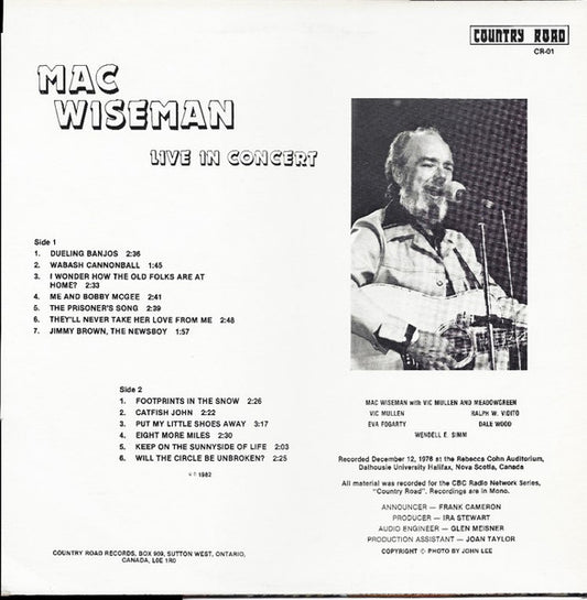 Mac Wiseman – Live in Concert (Country / Bluegrass, 1982 Vinyl LP)