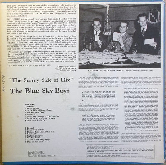 The Blue Sky Boys – The Sunny Side of Life (Bluegrass / Gospel, 1973 Vinyl LP)