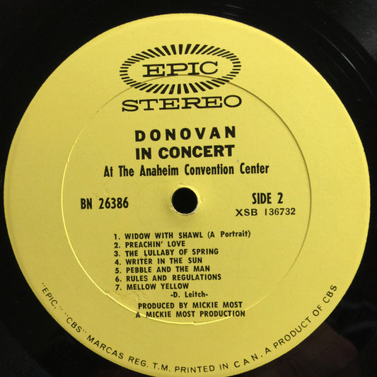 Donovan – Donovan In Concert - 1969-Rock, Folk, World, & Country , Psychedelic Rock, Folk, Folk Rock (vinyl)