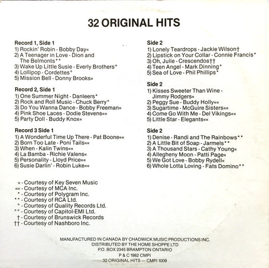 32 Original Hits - 2 lps- ritchie Valens, Chuck Berry, Everly Brothers, Buddy Holly + (vinyl) NM