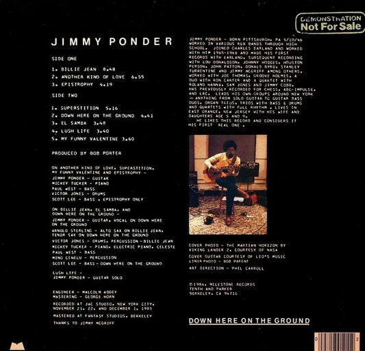 Jimmy Ponder Down Here On The Ground - 1984-Jazz-Funk (Vinyl) Mint Promo Copy