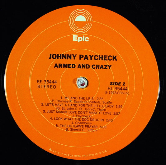 Johnny Paycheck –Armed And Crazy - 1978- Folk, World, & Country (Vinyl)