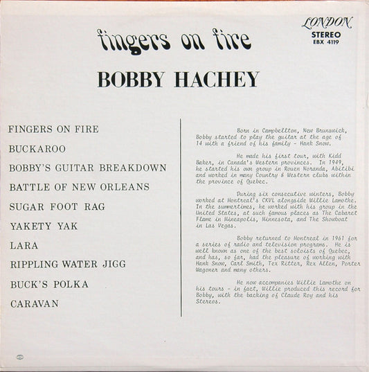 Bobby Hachey Fingers On Fire - 1968 Folk, World, & Country , Maritime (vinyl)