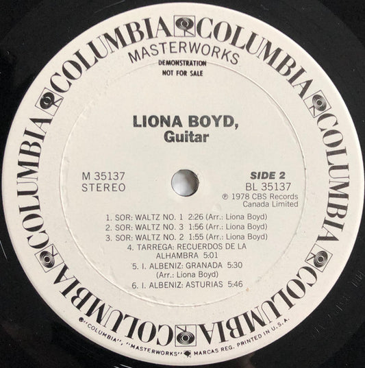 Liona Boyd / Albéniz* • Barrios* • Sor* • Satie* • Debussy* • Tárrega* • Payet* • Barnes* – The First Lady Of The Guitar DEMO COPY