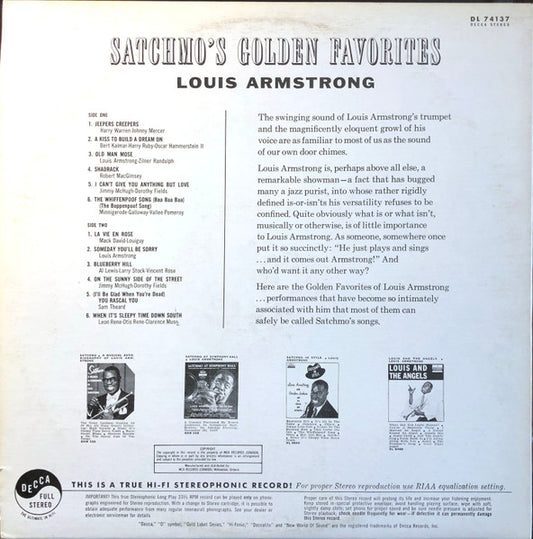 Louis Armstrong – Satchmo's Golden Favorites 1972-Jazz Style: Swing, Easy Listening (vinyl)