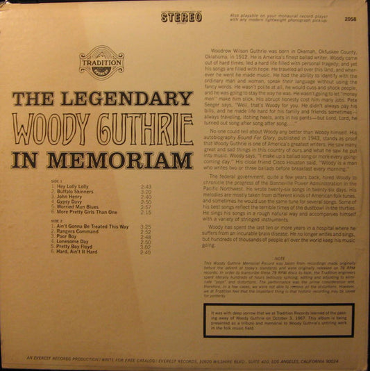Woody Guthrie In Memoriam -1967- Folk, World, & Country (Vinyl)