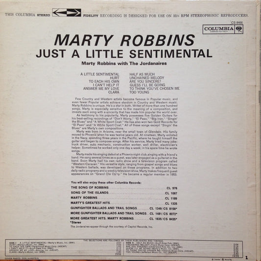 Marty Robbins – Just A Little Sentimental - 1961 - Folk, World, & Country (Vinyl)