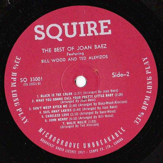 Joan Baez Featuring Bill Wood & Ted Alevizos – The Best Of Joan Baez- 1963- Blues Rock, Country Rock, Folk (Rare Vinyl)